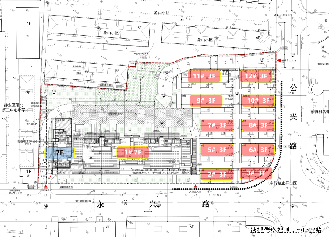 该地块东大公兴,南至永兴,西至静安区闸北第三核心小学,北至象山小区;该板块是静安区新房的从力供应区域,地块周边待上市新盘有越秀中兴项目(联动价12。1w)、静安玺樾12。5w、雅宾利四期(联动价13。3w)等项目。